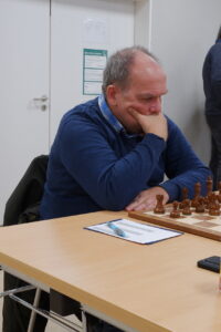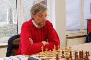 Uwe Rau steuerte ein Remis bei. Es war immer Spannung in der Stellung, die aber keiner zu seinem Vorteil nutzen konnte. Es tauschte sich zu einem remisen Turm-Springer Endspiel ab. (2½:½)