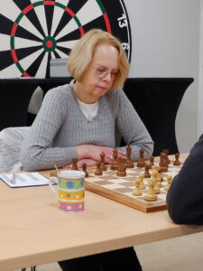 Los ging es mit einem schönen Sieg von Dagmar Aden. Sie hatte schon leichten Vorteil, als ihr Gegner einen normal aussehenden Entwicklungszug machte, der sich aber als schwerer Fehler erwies. Es kam 17. Te1 und danach ging ein schönes Figurenopfer.