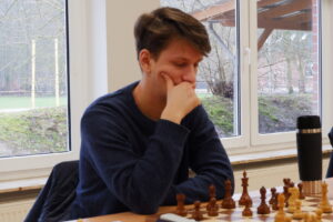 Keno Aden musste gegen das Nachwuchstalent von Nordhorn, antreten. Keno spielte eine gute Partie, aber sein Gegner war immer einen Ticken besser. Am Ende fand der Nordhorner einen schönen Gewinnweg, der die bessere Position seines Läufers ausnutzte. (4½:3½)