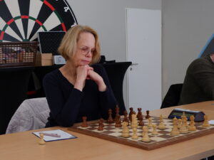 Die Partie von Dagmar Aden war taktisch geprägt, aber immer ausgeglichen. Hier ging es letztlich in ein Endspiel mit ungleichfarbigen Läufern, das keine Seite mehr gewinnen konnte. (3½:½)